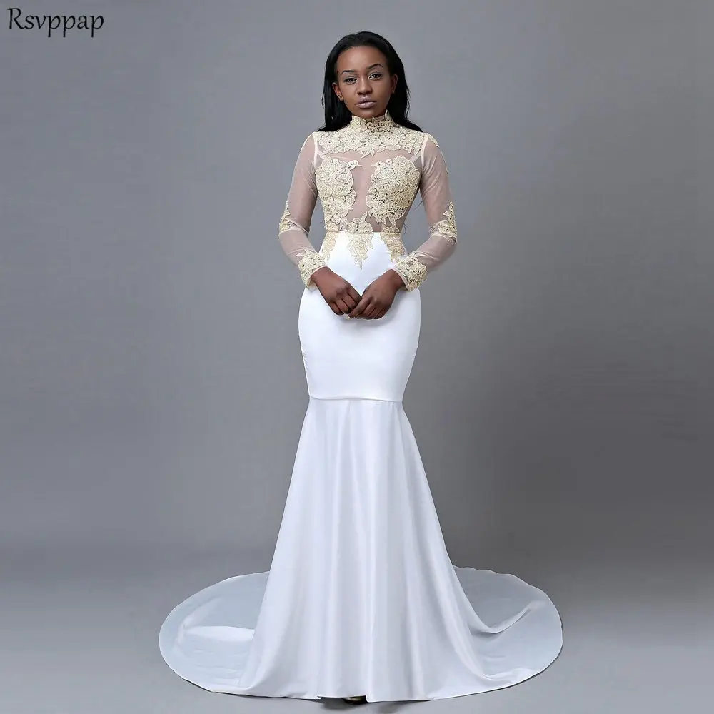 New African Black And Gold Mermaid Prom Dresses 2018 High Neck