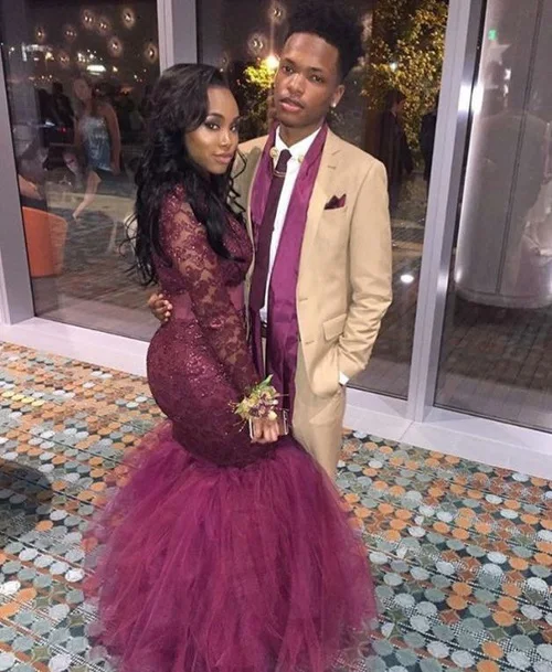 Hot African Burgundy Mermaid Prom Dresses Black Couple Fashion