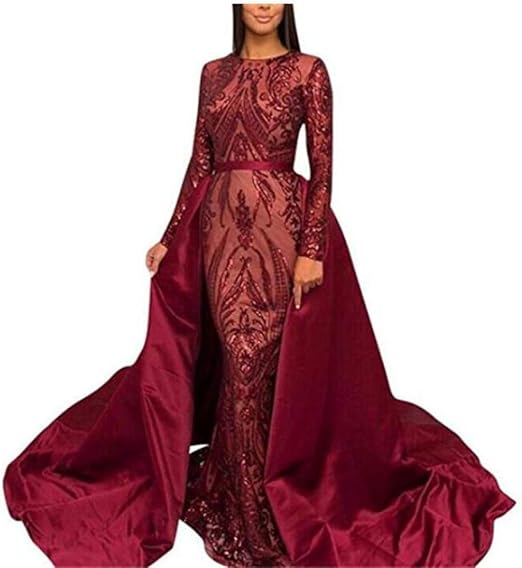 Inmagicdress 2018 Women Mermaid Prom Dress High Neck Long Sleeves
