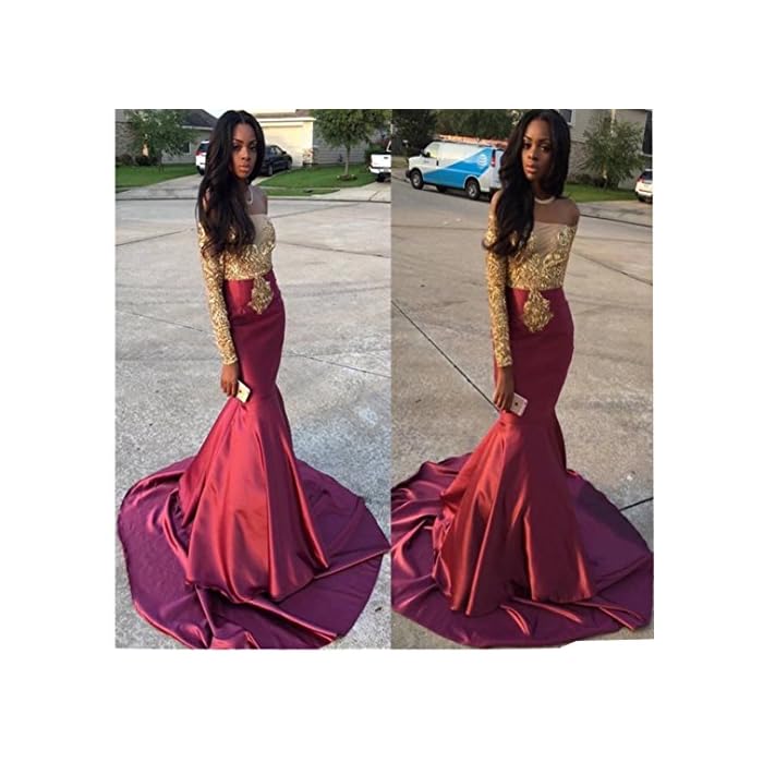 Gold And Maroon Long Sleeve Mermaid Prom Dress Mermaid Prom