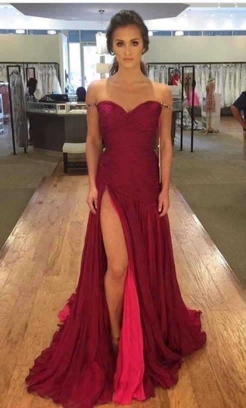 Leg Slit Red Prom Dresses With Long Train Loveangeldress