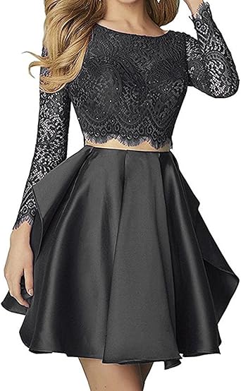 Black Two Piece Lace Homecoming Dress Long Sleeves Homecoming