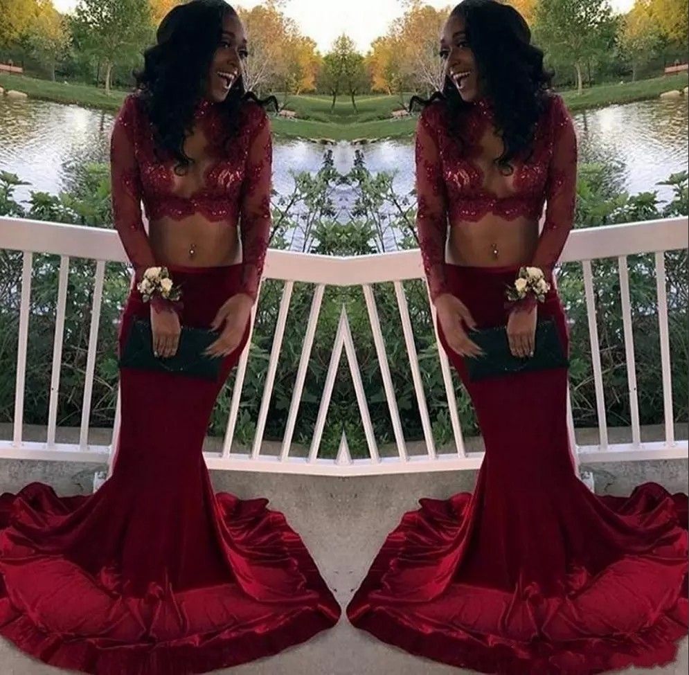 Long Sleeve Two Piece Burgundy Prom Dress Pemerintah Kota Ambon