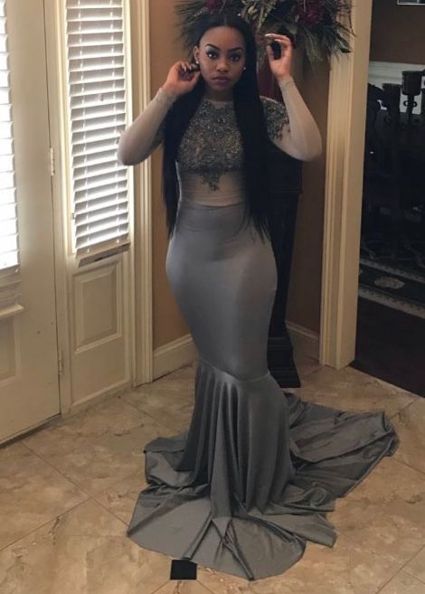 Prom Dresses Mermaid Prom Party Dresses Cheap Grey Long Sleeves