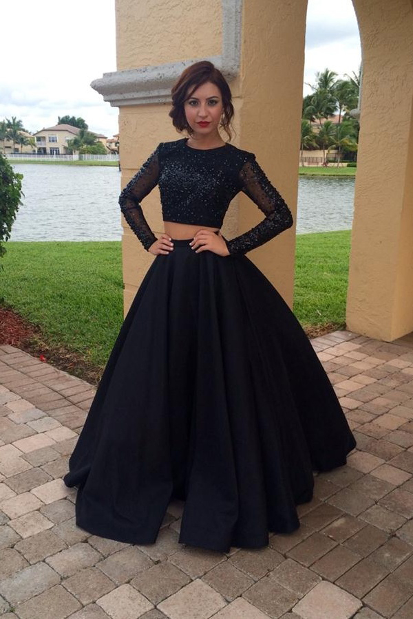 Long Sleeves Prom Dress Two Pieces Prom Dresses For Teens Modest