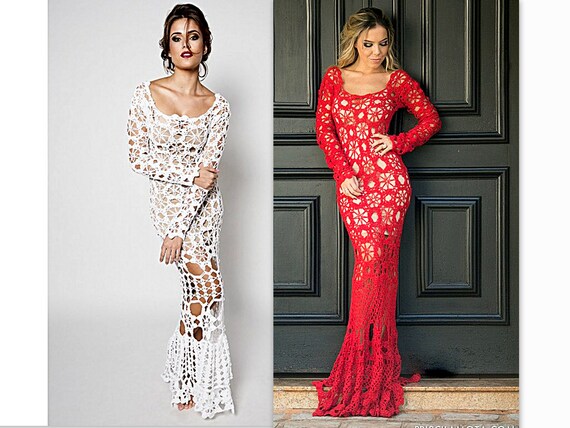 Modest Prom Dress Long Sleeve Wedding Dress Crochet Boho Etsy