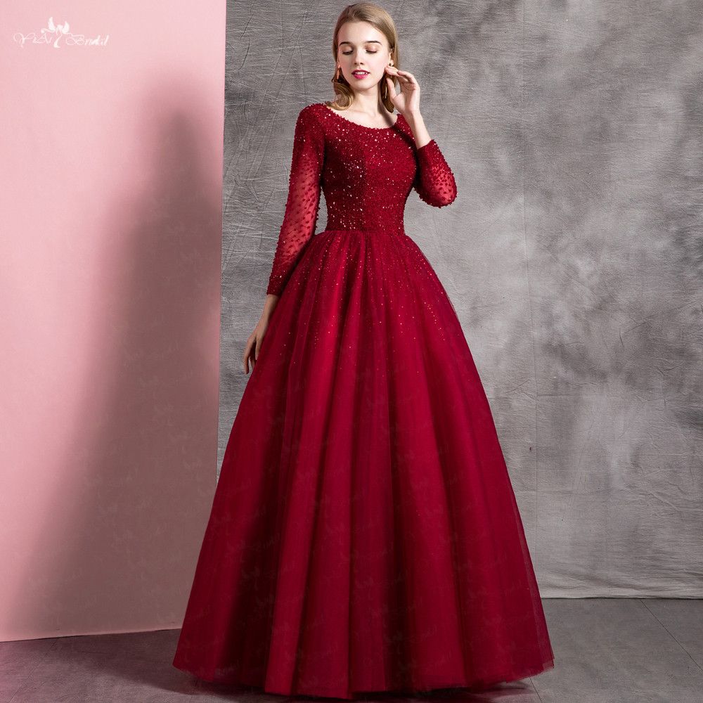 Burgudy Ball Gown Long Modest Prom Dresses With Long Sleeves