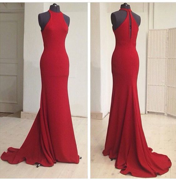 Simple Elegant Red Burgundy Colored Backless Mermaid Prom Dress
