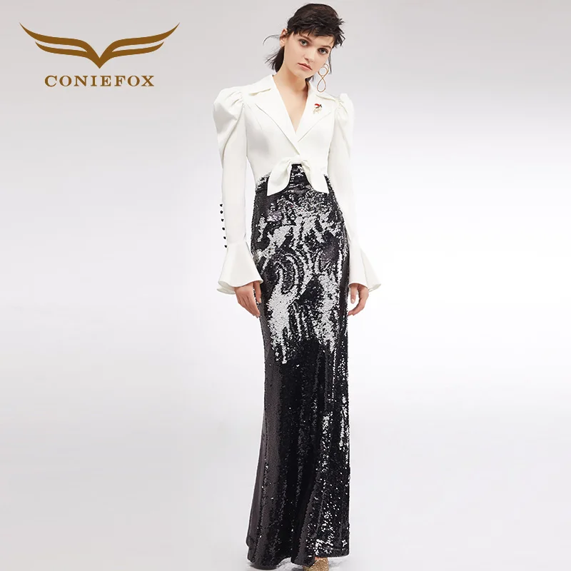 Coniefox 33289 New White Black Sequins Elegant Simple Style
