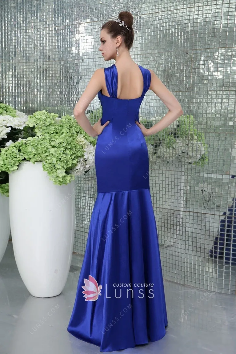 Royal Blue Satin Beaded Trumpet Elegant Prom Dress Lunss
