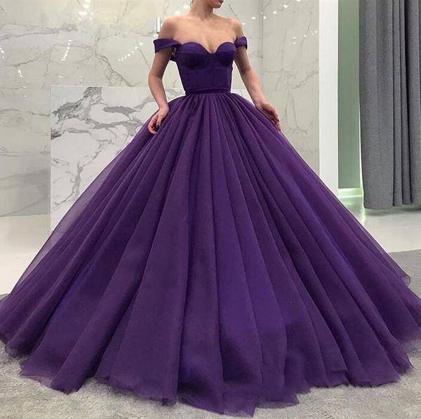 Purple Ball Gown Off The Shoulder Long Prom Dresses 2019 Formal