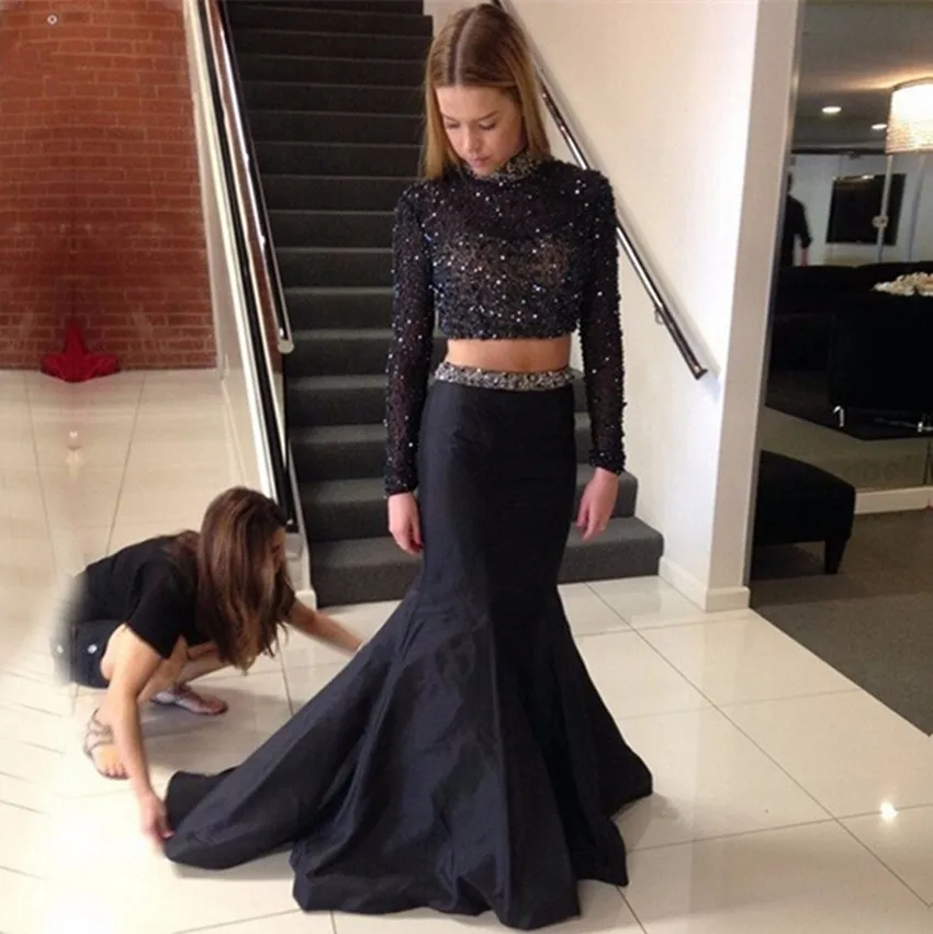 Black Two Piece Prom Dresses 2020 Robe De Bal Long Sleeve Sheer