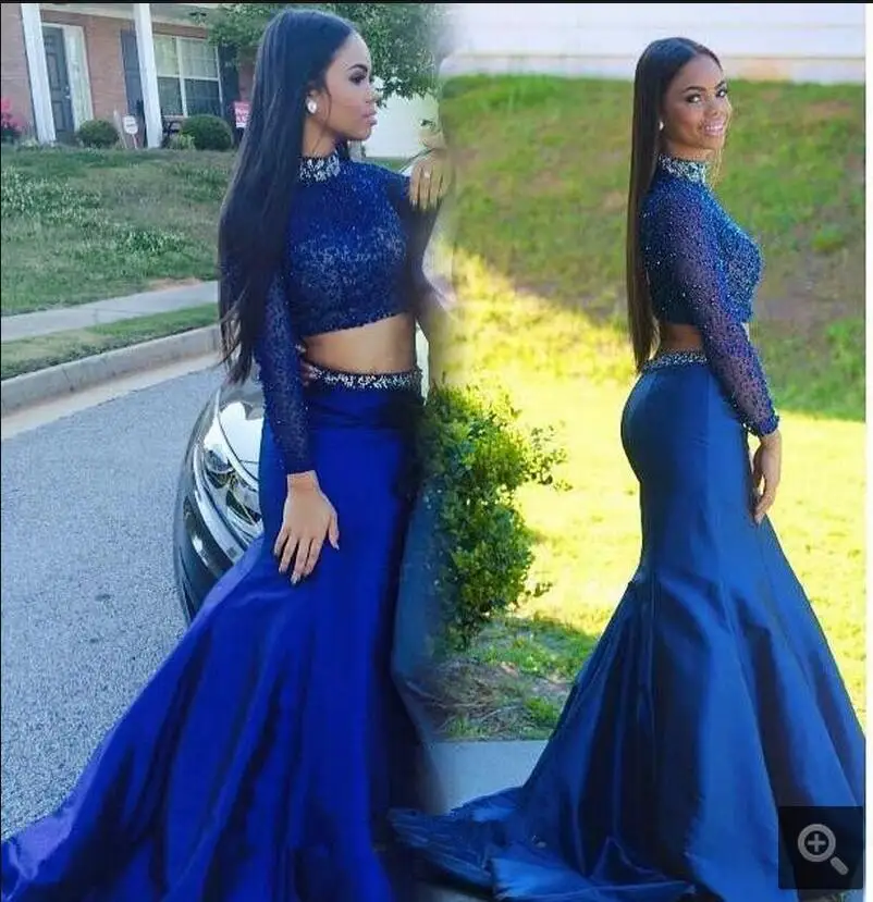 Women S Two Piece Prom Dresses Long Sleeve Lace 2019 Mermaid Royal