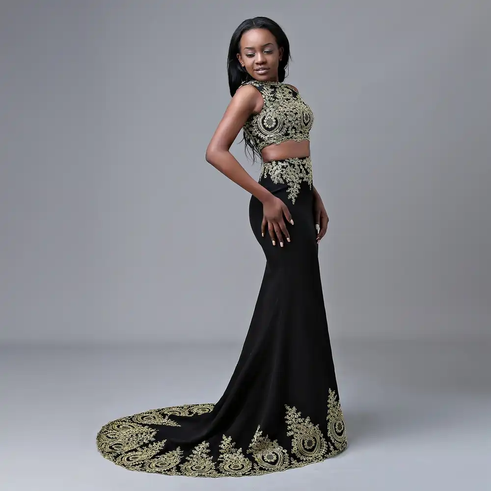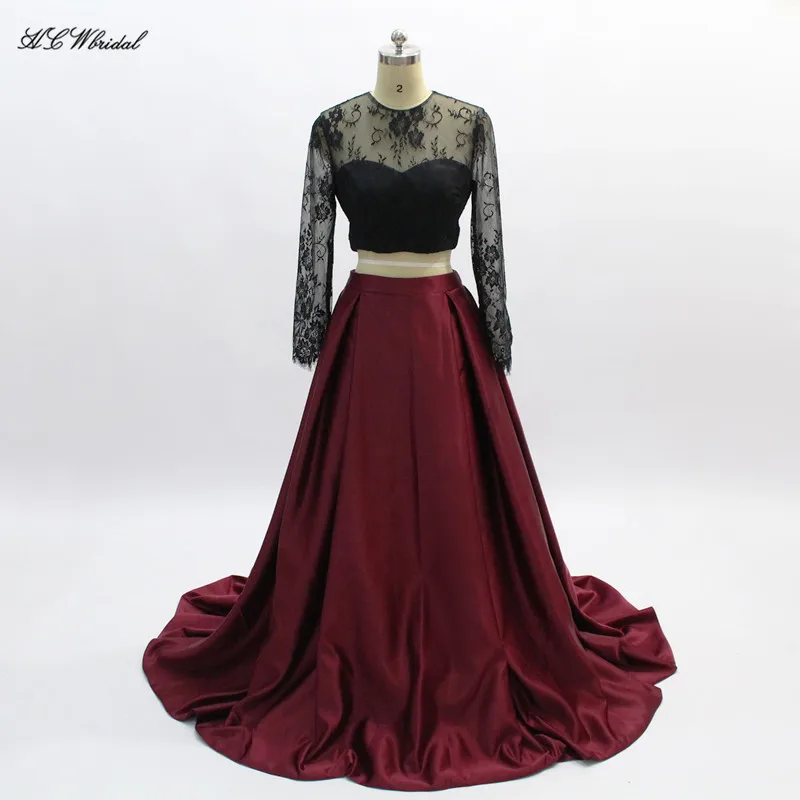 136 99 Black Long Prom Dresses 2019 Long Sleeves Lace African Two
