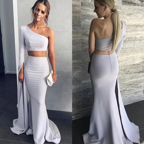 Modest Two Piece Mermaid Prom Dresses 2019 One Shoulder Long