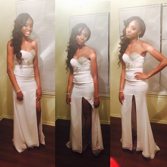 Prom Dress White Tight Fitting Slit Down The Middle Backless Ivory