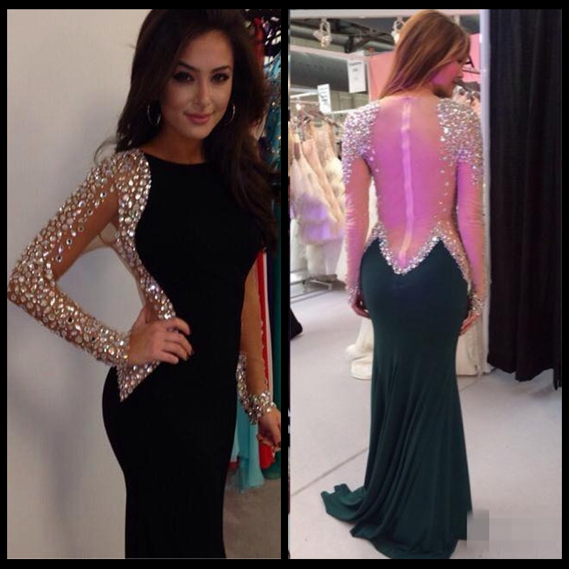 2017 Backless Sexy Prom Dresses Slim Fitted Sheer Long Sleeve