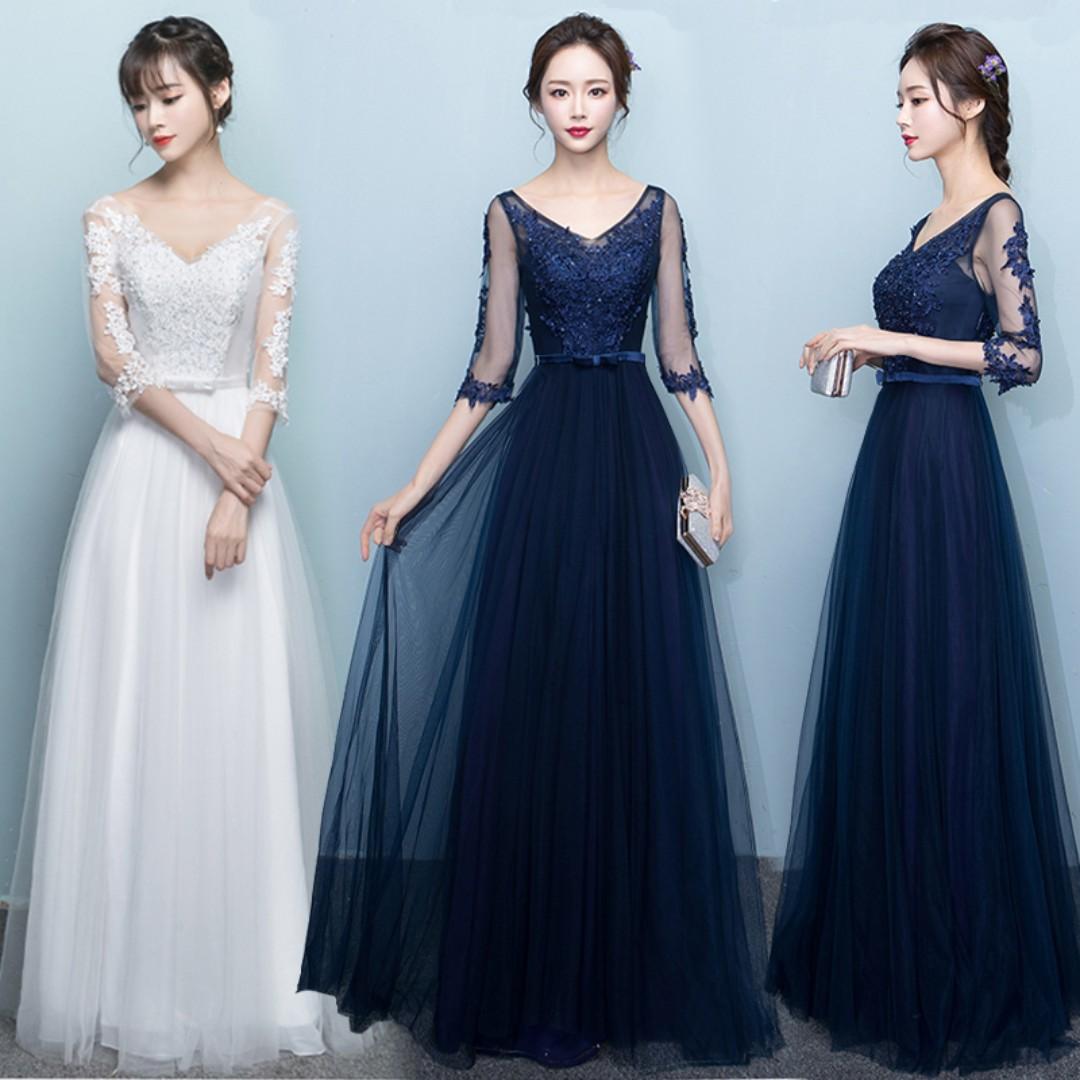 Pre Order Blue White Red Long Sleeve Evening Prom Dress Gown