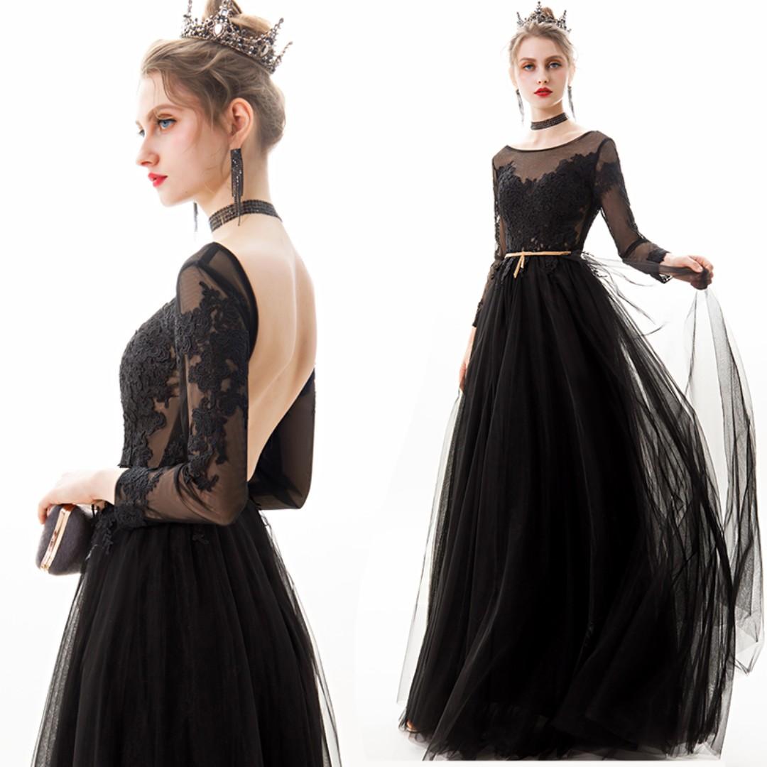 Pre Order Black Red White Long Sleeve Evening Prom Dress Gown