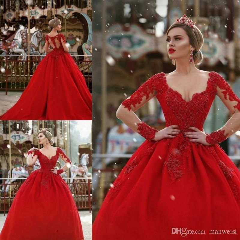 Women S Long Sleeve Red Lace Ball Gowns Quinceanera Evening Prom