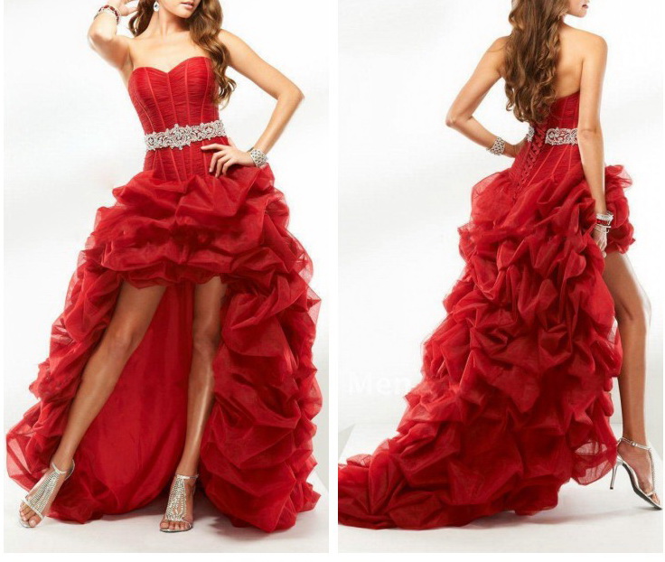 Hi Lo Red Evening Dresses Ball Gown 2016 Real Sample Sweetheart