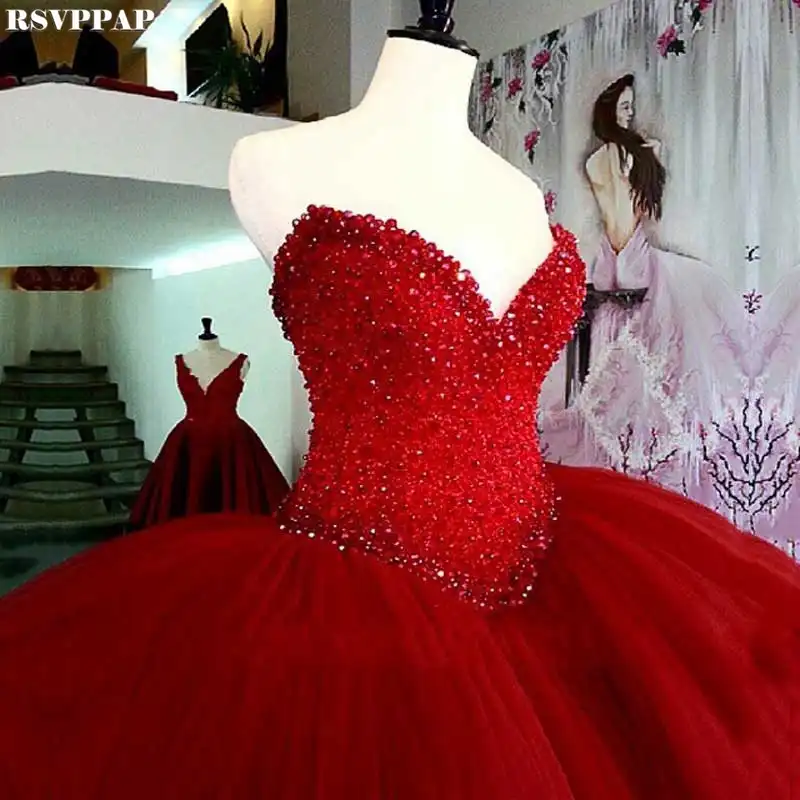Long Red Ball Gown Evening Dresses 2019 Real Sample Sweetheart