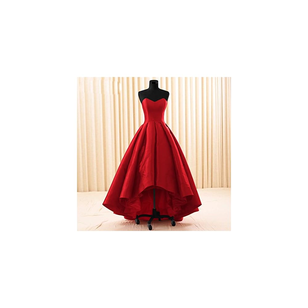 2018 High Low Red Prom Dresses Sexy Strapless Cheap Satin Short