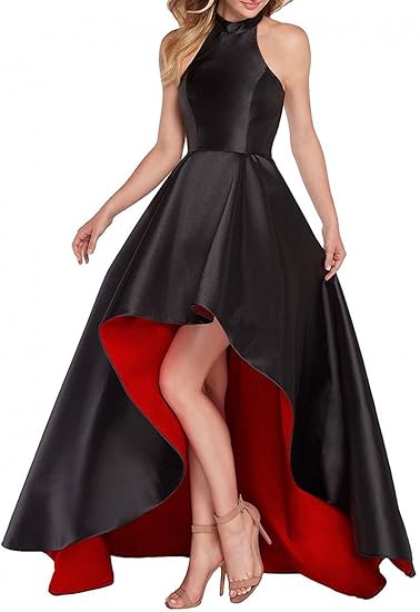 Dannifore Women S Halter High Low Evening Party Dress Satin Prom