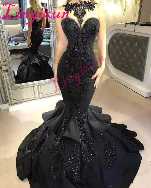 Stunning Black Mermaid Long Prom Dresses 2020 Sexy Beaded