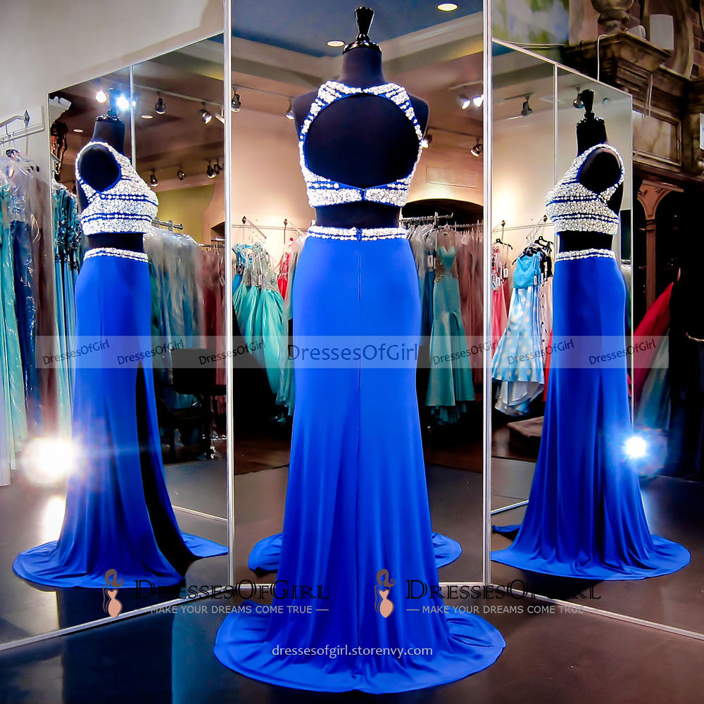 Two Piece Prom Dress Sexy Prom Dress Royal Blue Prom Dresses Long