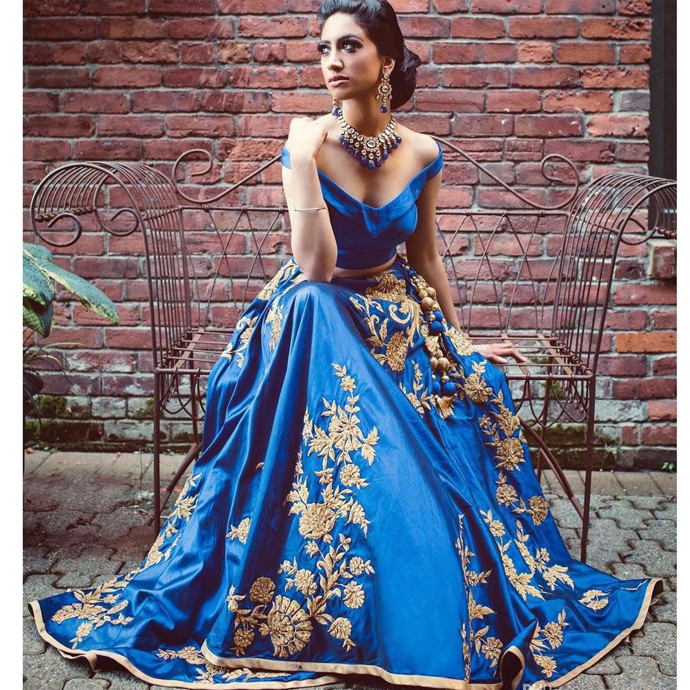 Beaded Royal Blue Organza Two Piece Prom Gown Lunss