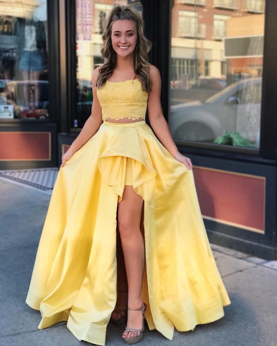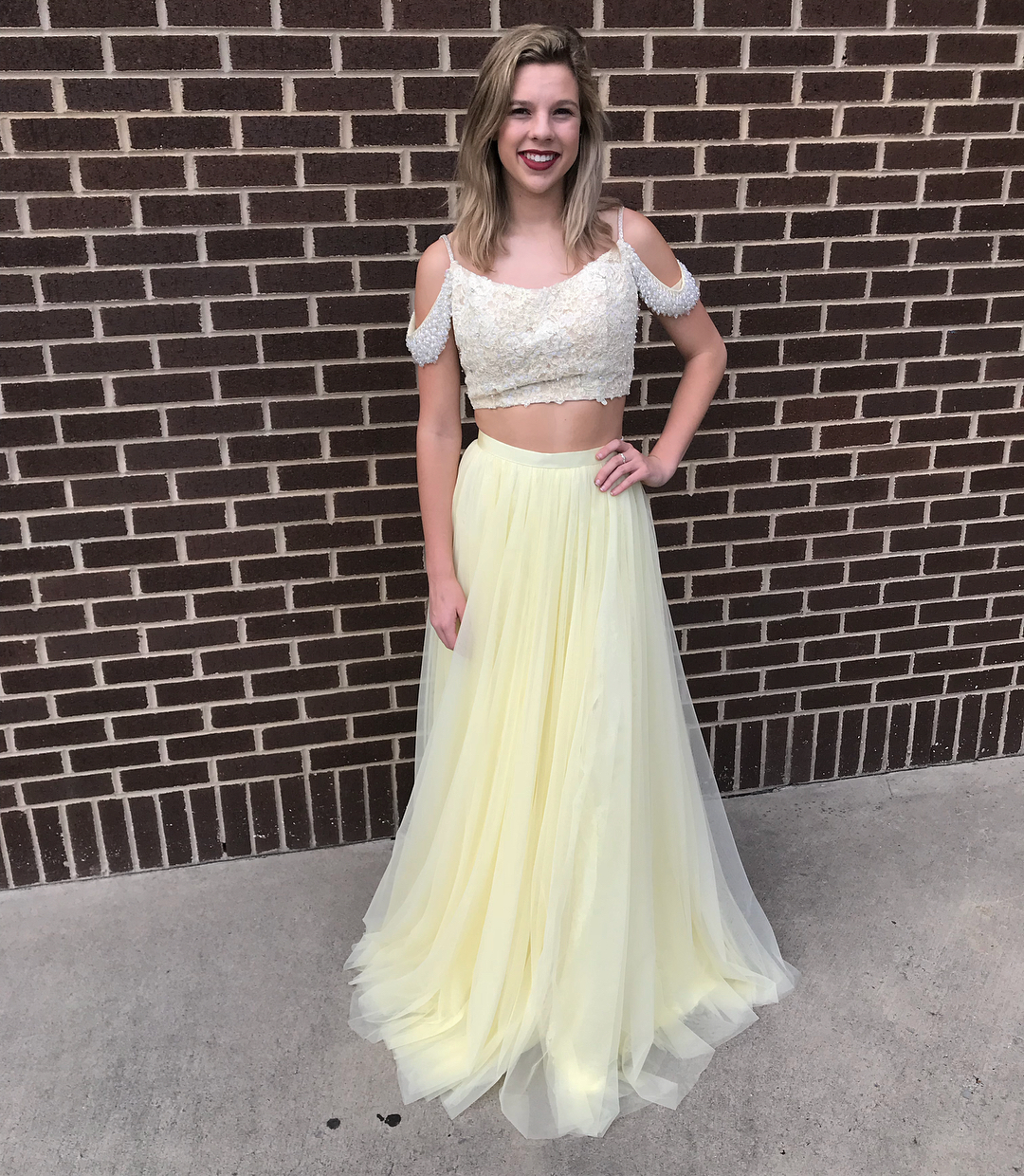 Two Piece Prom Dresses Yellow Homecoming Dresses Formal Dresses