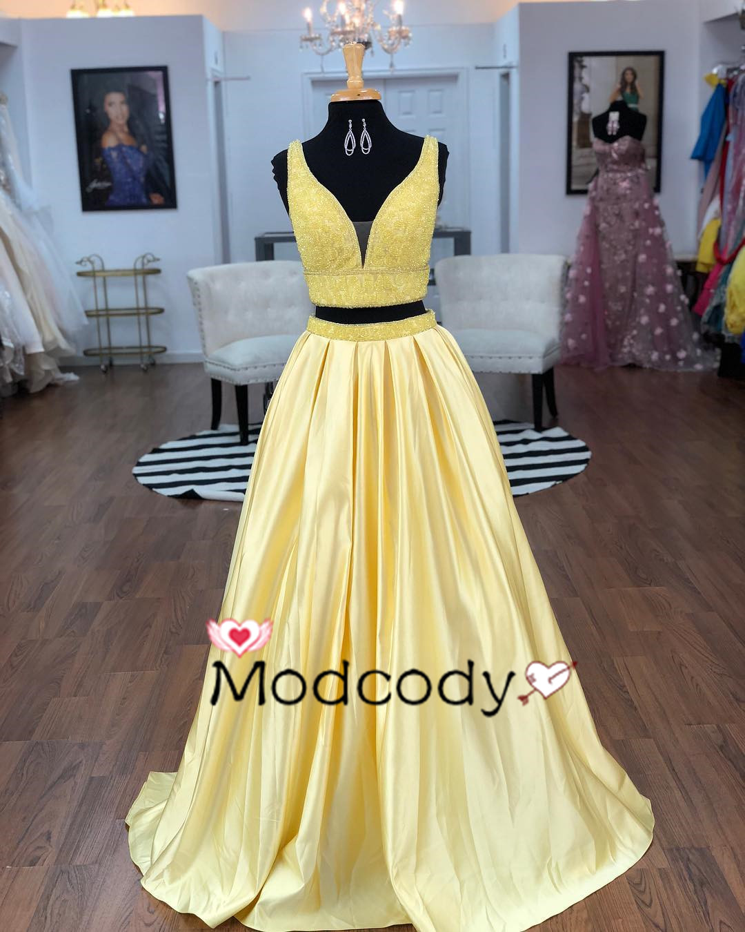 Two Piece Prom Dresses Yellow Prom Dresses Long Prom Dress With