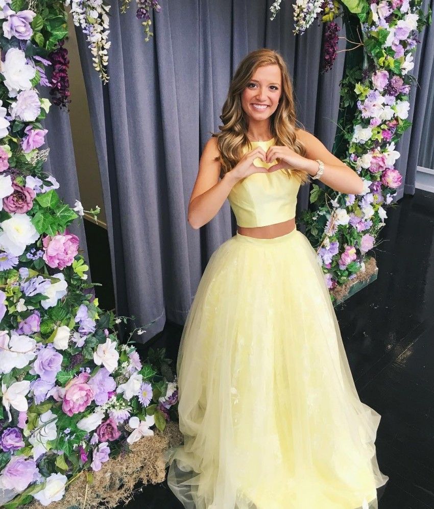 Long Ball Dresses Two Piece Yellow Prom Dresses 2018 Princesses