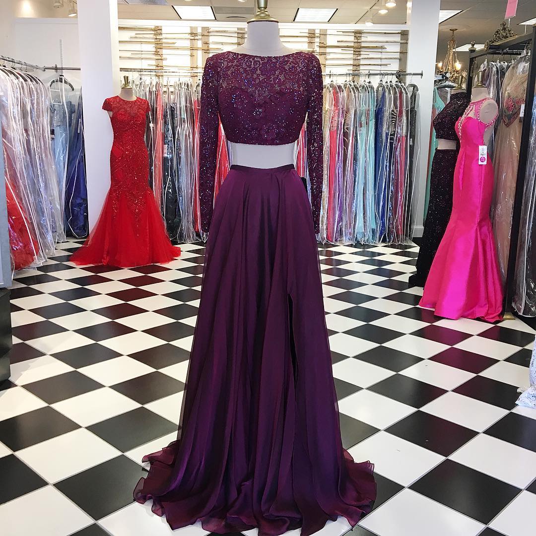 Long Sleeve Two Piece Prom Dress Fashion Dresses