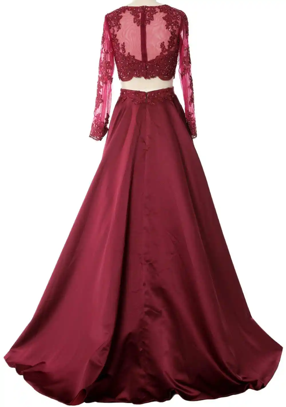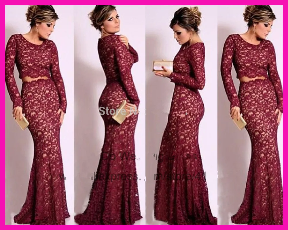 Two Piece Long Sleeves Lace Prom Gown Burgundy Formal Dress On Luulla