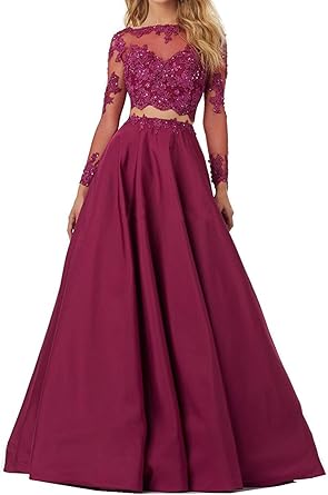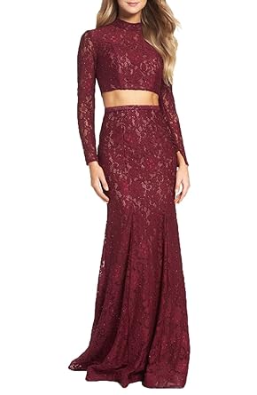 Modeldress Women S Long Sleeve Two Piece Burgundy Prom Dresses