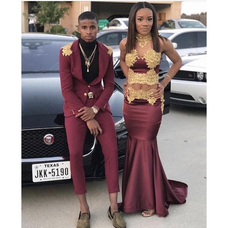 Black Girls Two Pieces 2018 High Neck Burgundy Prom Dresses