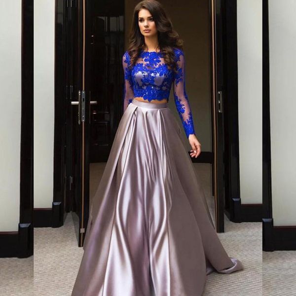 Illusion Satin Long Sleeve Two Piece Prom Dress Lunss
