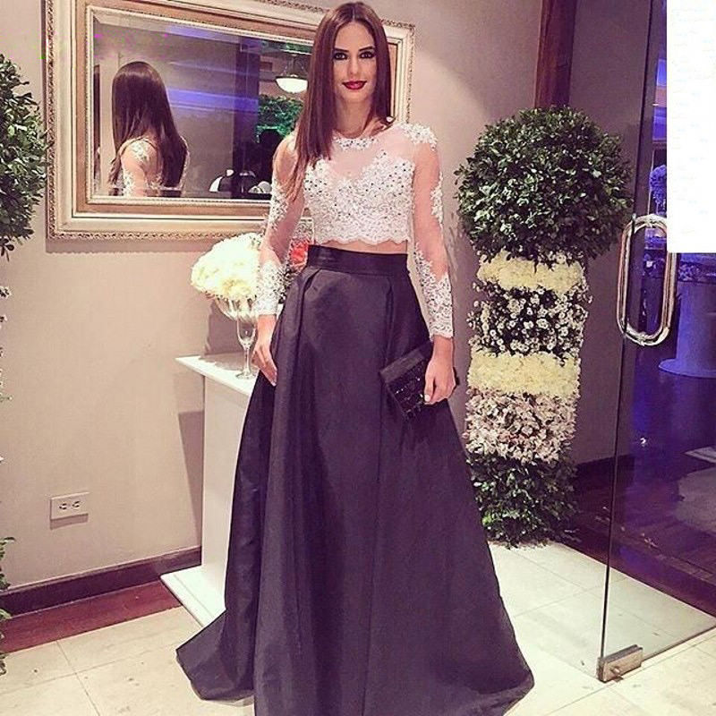 2017 Two Piece Prom Dress Long Sleeve Evening Dress Plus Size