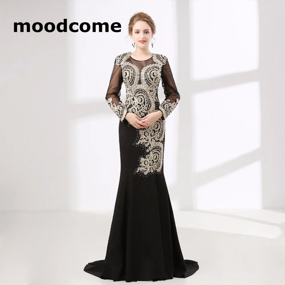 2020 Black Mermaid Long Sleeve Mermaid Evening Dresses Beaded