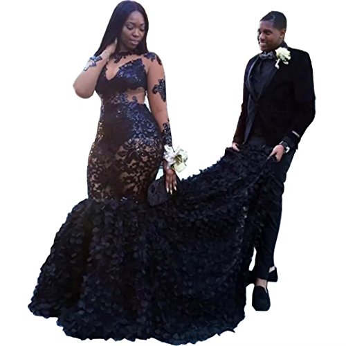 Black Mermaid Lace Long Sleeve High Neck Plus Size Prom Dresses Uk