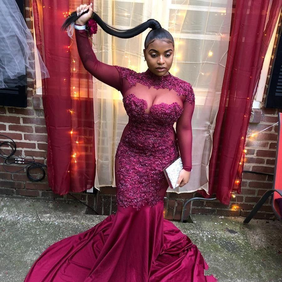 2019 Burgundy African Mermaid Plus Size Prom Dresses African Long