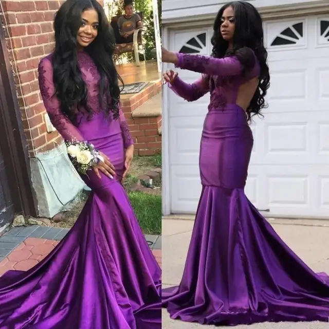 169 99 Grape Long Prom Dresses 2019 Mermaid Long Sleeves African Sexy