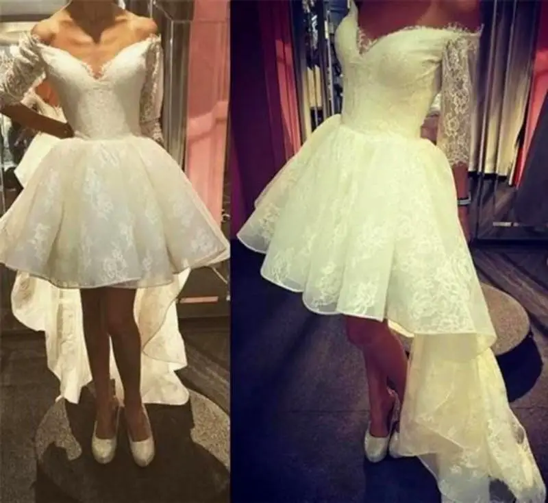 Prom Dress High Low Prom Dresses Off The Shoulder Long Sleeve Lace