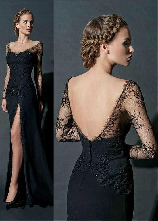 Black Prom Dress Lace Prom Dress Long Sleeves Prom Dress