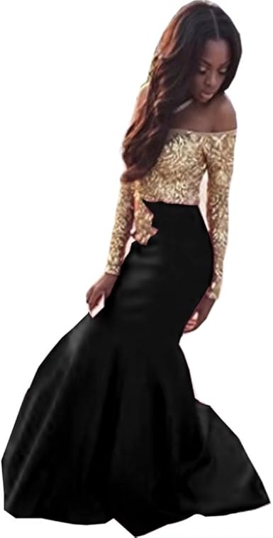 Off The Shoulder Black Lace Prom Dresses Long Sleeve Prom Dress