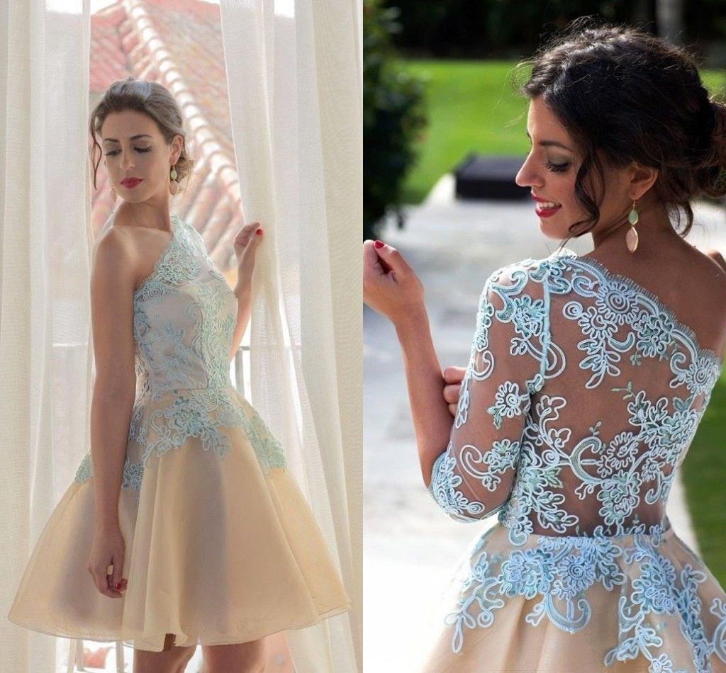 Single Long Sleeves Lace Prom Dresses One Shoulder Organza Light