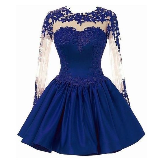 Robe De Cocktail Royal Blue Lace Long Sleeves Short Prom Dresses
