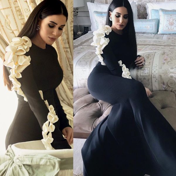 Elegant Mermaid Black Evening Dresses 2019 Long Sleeves Hand Made